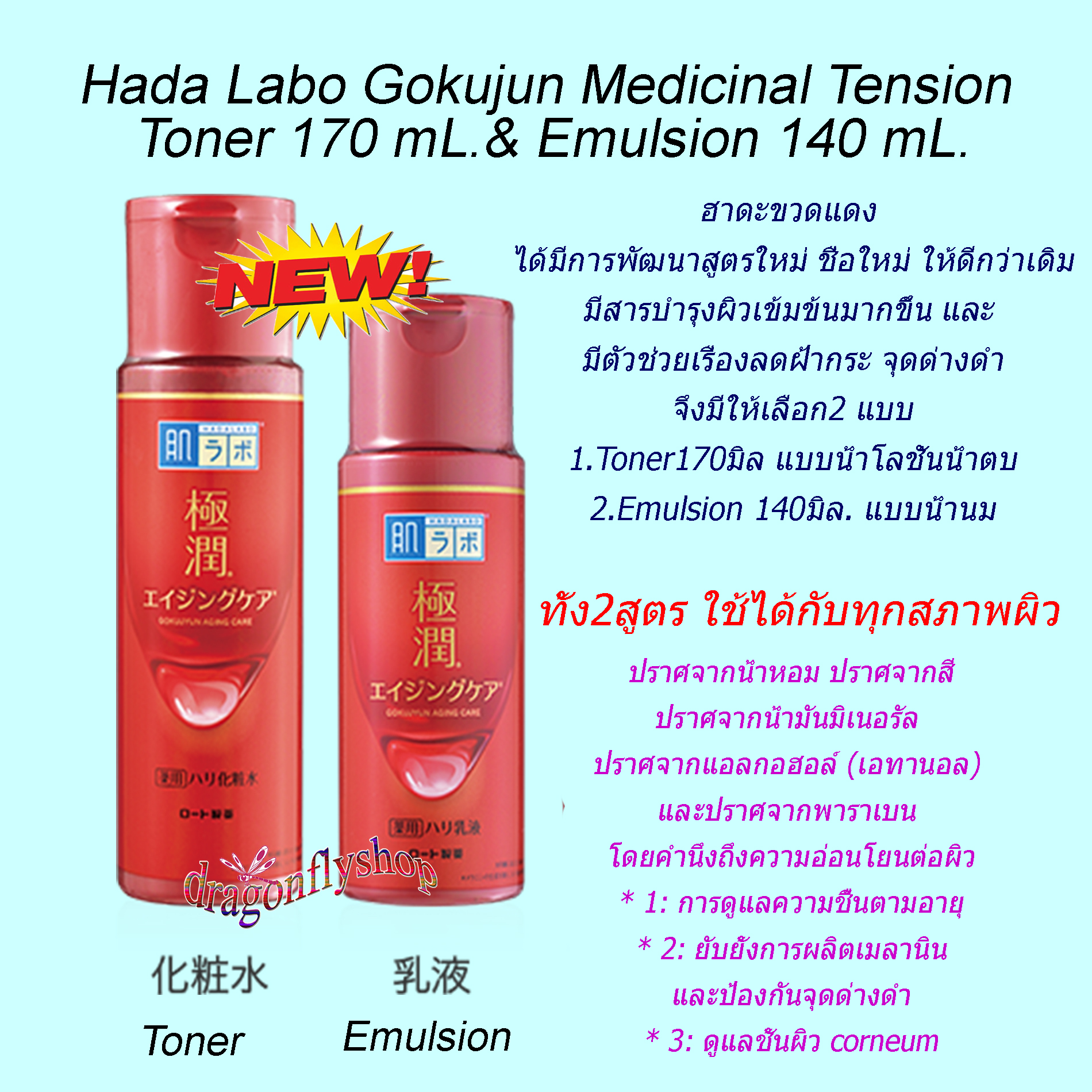 Hada Labo Gokujyun Aging care Medicinal Tension Toner 170 mL.& Emulsion140ml.