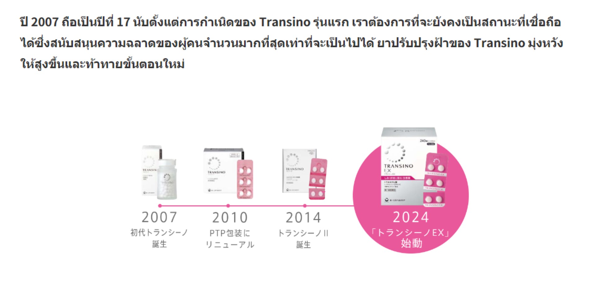 Transino EX พัฒนาผลิตภัณฑ์เพิ่มประสิทธิภาพความกระจ่างใส มากขึ้น