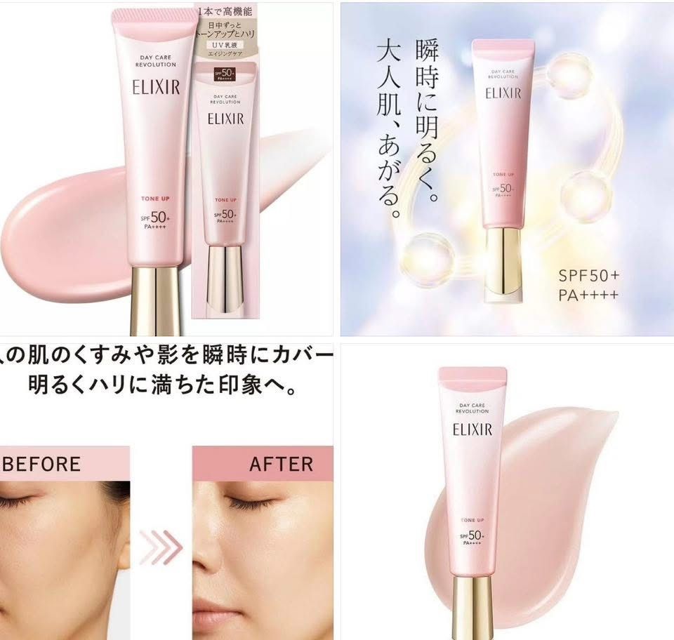 1. Shiseido 𝗘𝗟𝗜𝗫𝗜𝗥 𝗗𝗔𝗬 𝗖𝗔𝗥𝗘 𝗥𝗘𝗩𝗢𝗟𝗨𝗧𝗜𝗢𝗡 𝗧𝗢𝗡𝗘 𝗨𝗣 𝗦𝗣𝗙𝟱𝟬+ 𝗣𝗔++++ 35g.